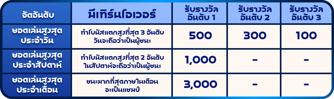 รางวัลทำเทิร์น 1 เท่าและใช้เล่นเกมใดก็ได้ ไม่จำกัด